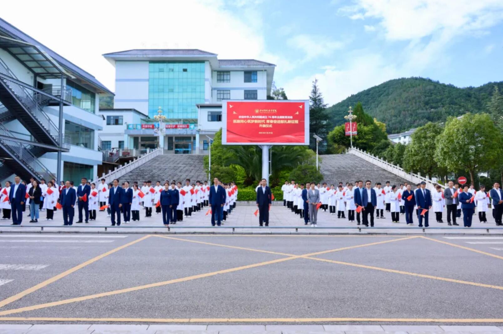 昆明卫生职业学院两校区同步举行庆祝新中国成立76周年主题升旗仪式