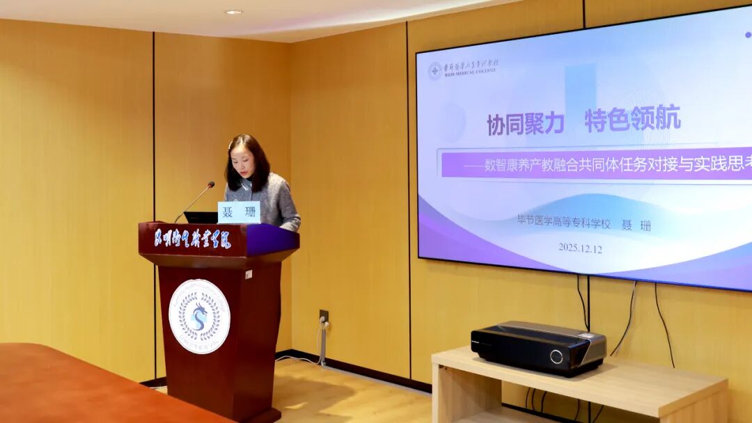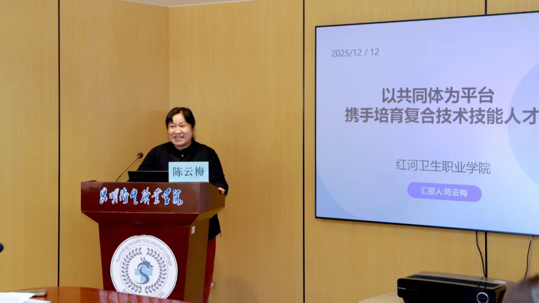 天津医学高等专科学校校企合作办项目负责人杨静就共同体组织架构、运行机制及子任务推进计划进行汇报。她系统阐述了共同体的组织设计、协作平台搭建与任务分解机制,强调要通过制度保障与项目化管理,确保各项建设任务落地见效。